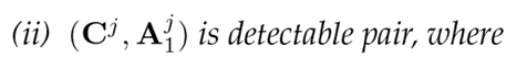 Lemma 3.2. Let Cj1 = [ Cj Cj A]⊤ . Then, the detectability of the pair (C j 1 , A) is equivalent to that of the pair (Cj , A).