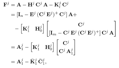 where Hj0 ∈ Rn×(p−1) is an arbitrary matrix and (Cj Ej )+ is the left inverse of Cj Ej , as defined in 20. Substituting the solution for Hj into 13, the system dynamics matrix Fj is