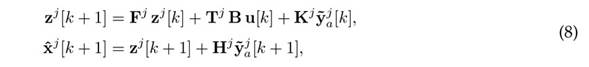 whose jth component is eliminated. Fj ∈ Rn×n, Tj ∈ Rn×n, Kj ∈ Rn×(p−1), and Hj ∈ Rn×(p−1) are design matrices such that the estimated state of the UIO,