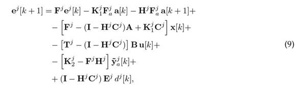In addition, the eigenvalues of Fj must be stable in order for the estimation error to converge to zero. This implies that, for the UIO to estimate the state, all the terms on the right side of 10 but the first must be equal to zero. That is, it must be ensured that