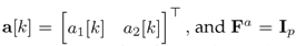 where a[k] is a vector of p functions that represents the attack signals, and Fa ∈ Rp×p represents the outputs affected by the attack a[k], i.e., only one output at a time.
