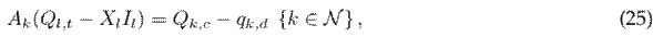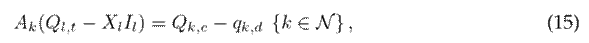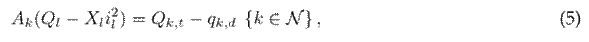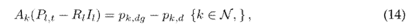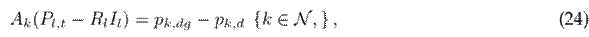 where Ak in the incident matrix for node k (node-to-branch); Pl and Ql are vectors that contain the active and reactive power flows of the branches, respectively; pk,dg is the active power generated via renewable energy sources at node k; pk,d and qk,d are the active and reactive power consumption at node k; Qk,c is the reactive power delivered by the capacitor bank connected to node k; and Xl is the reactance associated with branch l.