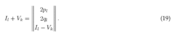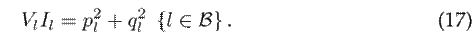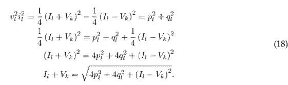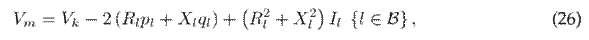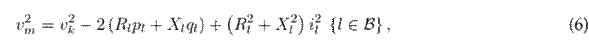where vm (or vk ) represents the magnitude of the voltage at node m (or k), pl denotes the active power flow of branch l, and ql is the reactive power flow of branch l.
