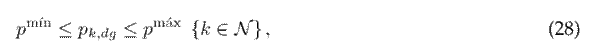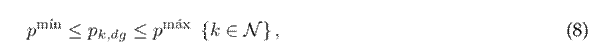 Box constraint (8) bounds the minimum and maximum active power available from renewable energy sources, while box constraint (9) is dictaded by regulatory limits for the adequate operation of EDNs. The typical values are between ±5 % and ±10 % 31.