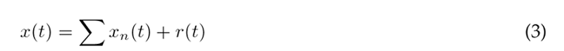 EMD has some issues, such as the presence of oscillations of unequal amplitude in one or more modes and similar oscillations in different modes, a phenomenon known as mode mixing. The screening process can be summarized in the following algorithm: decompose a dataset x(t) into IMFs xn(t) and a residual r(t), such that the signal can be represented as: