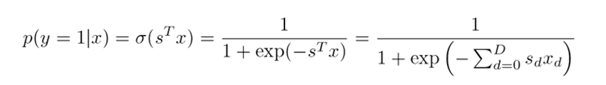 . Let x = (x1,...,xD) be the input vector, and let y be the binary class label. y can be either 1 or 0. The probability model underlying LRis as follows24: