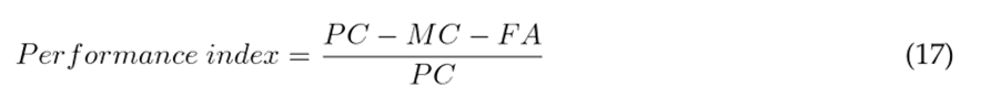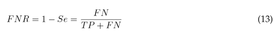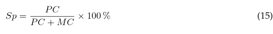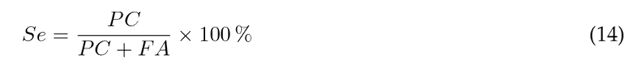 In a perfect classification (PC) with are no errors, the total number of PCs would be equal to the TPs plus the TNs, since a perfect model would correctly identify all the actual positive cases as positive (TP) and all the actual negative cases as negative (TN). False alarms occur when the model erroneously forecasts the positive class despite the actual class being negative. These instances are also recognized as FPs. The sensitivity in Eq. (14) was calculated in this way. The key difference of this equation is that the denominator contains FPs rather than FNs, so, while the standard sensitivity equation says how many actual positives were correctly found, this version says how many positive predictions were correct. The issue with using FPs in the denominator is that it penalizes the sensitivity score if the number of false alarms goes up. FNs refer to missed positive classifications when an actual positive case is incorrectly classified as negative. Thus, MC = FN.