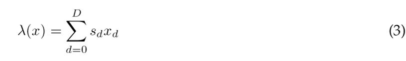 where s represents a vector of weights to be learned. Note that x0 = 1 is a constant term. To determine the weight vector s, LR employs maximum likelihood optimization.