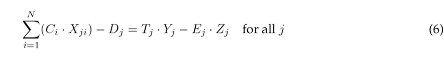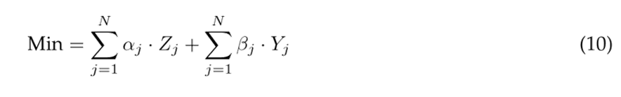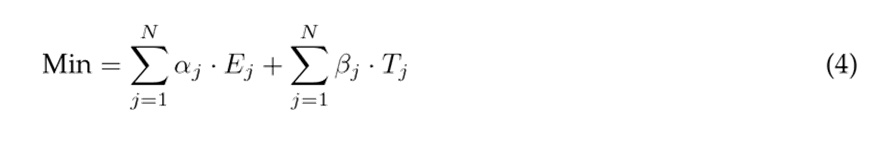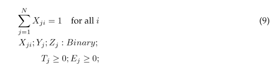 Eq. 4 shows the definition of the objective function. Eq. 5 calculates the completion time of the scheduled job at position i. Eq. 6 calculates the earliness or tardiness of job j. If the earliness is greater than zero, the binary variable Zj takes a value of 1, and, if the tardiness is greater than 0, the binary variable Yj takes a value of 1. Eq. 7 establishes that the completion time of job j is greater than the release time plus the processing time when there are different job release times. Eq. 8 determines that a job j can only be scheduled in a single position i . Eq. 10states that, in a position I, only one jobj can be scheduled.
