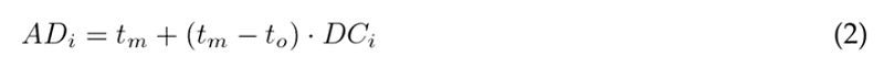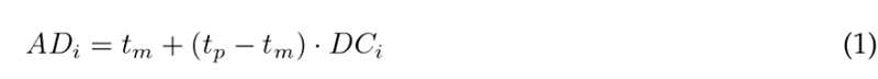 where ADi represents the duration of activity i; tm denotes the most probable time; tp is the pessimistic time; to represents the optimistic time; and DCi is the duration coefficient for activity i.