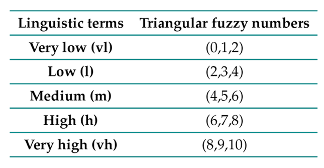 Finally, to obtain a non-fuzzy number, the Facchinetti approach was employed. The triangular fuzzy numbers were defuzzified to get a priority ranking that could be ordered from the highest to the lowest value.
