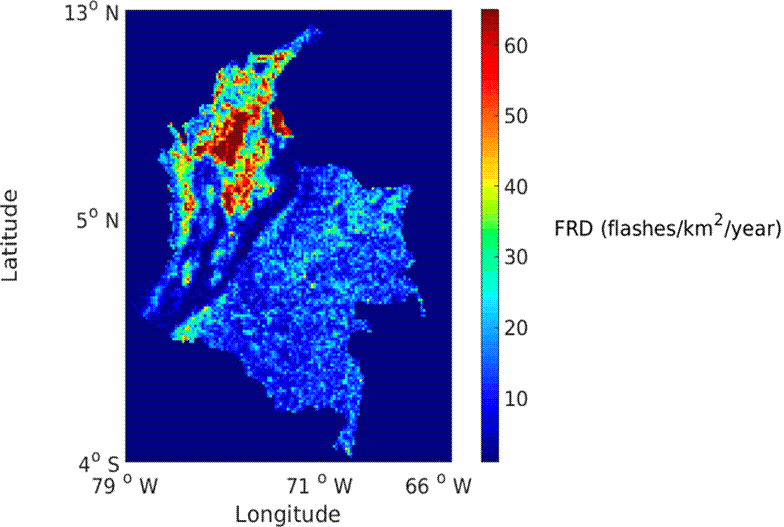Herrera J., Younes C., Porras L.. Cloud-to-ground lightning activity in colombia: A 14-year study using lightning location system data. Atmos. Res.. 2018; 203164-174. https://doi.org/10.1016/j.atmosres.2017.12.009