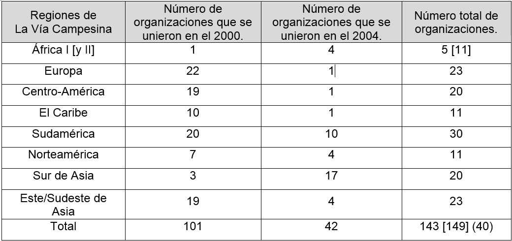 A partir de la primera Conferencia en Mons,[13] LVC gana cada vez más tamaño y autonomía, siendo desde entonces uno de los principales referentes en el ámbito mundial de los campesinos pobres y de varios grupos de campesinos indígenas[14]. Este papel referencial, sin embargo, no significa que LVC sea la única organización internacional en reivindicar la representación de tales sujetos políticos del campo. Pero es justamente por operar en un espacio tensionado, donde distintos actores sociales reivindican ser representantes de las voces de los campesinos, que LVC se destaca, en oposición a las demás organizaciones, basada principalmente en su base social y en su estructura organizativa diversificada: