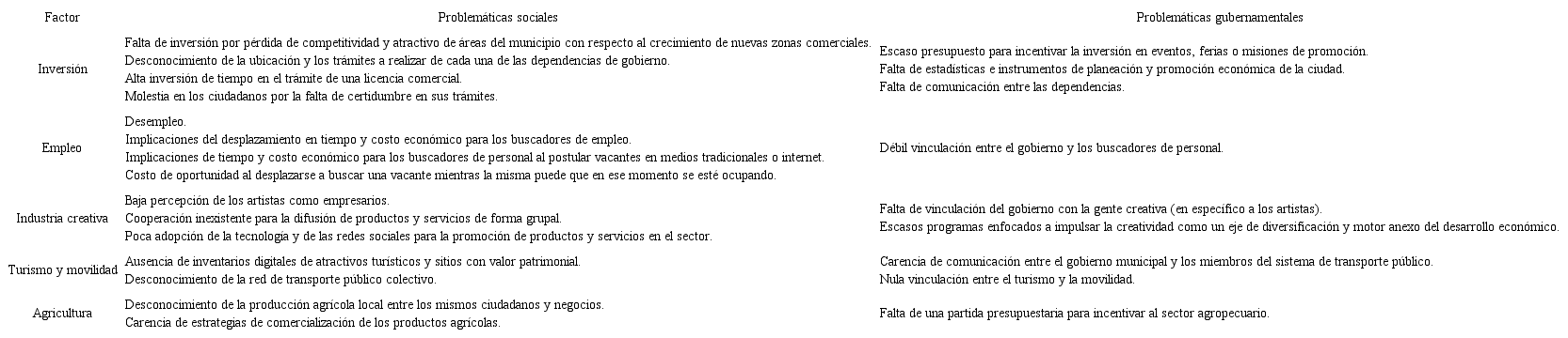 Aunado a lo anterior, otras de las debilidades detectadas giran en torno a la aún marcada brecha digital existente en el municipio, tanto desde la óptica de la ciudadanía como dentro del sector gubernamental, pasando por la falta de infraestructura, conocimientos y desconexión a la red, además de una clara falta de recursos económicos para una mayor promoción de este tipo de plataformas (cuadro 6).