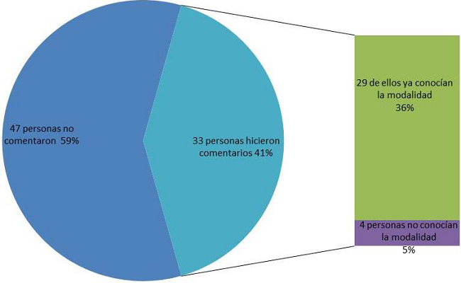 Al profundizar en las palabras de las 33 personas que comentaron la publicación, 29 de ellas (36%) ya habían tenido referencia del teletrabajo como modalidad de empleo, mientras que las otras cuatro personas (5%) desconocían el tema.