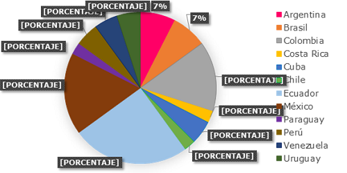 La gráfica 2 muestra los países de origen de las investigaciones consultadas. Como se puede observar, Ecuador es el país con mayor cantidad de publicaciones durante el período analizado (25%), seguido por México (18%) y Colombia (15%). Respecto a la distribución de las publicaciones por regiones del continente latinoamericano, América del Sur es la zona geográfica que domina este aspecto, con el 74% de las investigaciones.
