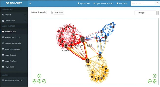 Para la representación del grafo y el cálculo de la AT se utilizó GRAPH-CHAT, una herramienta desarrollada por los autores para generar el grafo que representa la red social (Del Castillo, 2018) (ver figura 4).