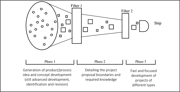 Figure 1 illustrates the process of innovation in funnel of Clark and Wheelwright (1992).