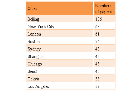 Although the United States is the country the most publications on the term Big Data in the that publishes most in this area, it does not have medical field. Table 2 shows the top 10 cities.