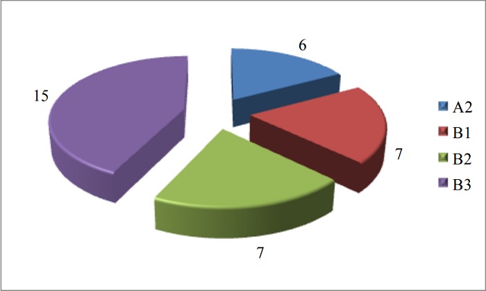Analisando o número de publicações por estrato de avaliação da Capes, observa-se na Figura 3 que o maior volume de artigos encontra-se em periódicos do nível de avaliação B3, e uma distribuição aproximadamente equitativa entre os estratos A2, B1 e B2.
