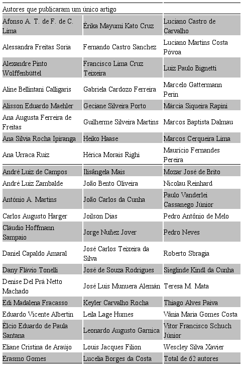 O seguinte aspecto a ser analisado trata da caracterização da autoria dos artigos, verificando-se os autores e as instituições às quais estes estavam vinculados no momento da publicação.