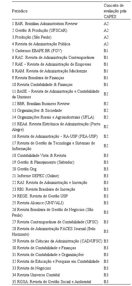 A seleção final dos periódicos, respeitando os critérios citados, é apresentada na Tabela 3.