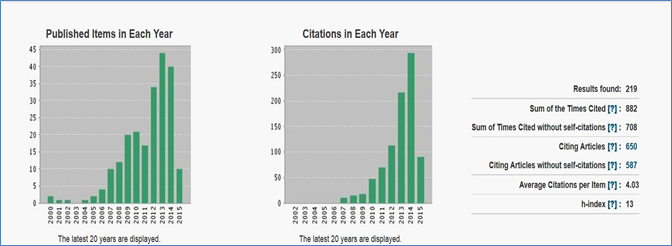 A search for the term “Business Model Innovation” in titles, abstracts and keywords in the WEB OF KNOWLEDGE database obtained 219 published articles as a result (Figure 1). Filters were not in place for peer-reviewed articles, due to the possibility that part of the sample could be in non-academic journals.