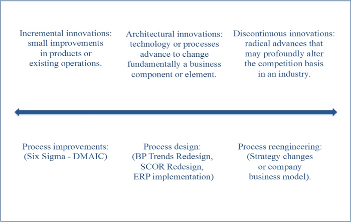 The innovation continuum enables an understanding of why business process innovation came to be “a core focus area for successful organizations” (Kirchmer, 2015, p. 84). To this author, organizations need and must participate in business process innovations on a daily basis in an attempt to ensure their survival in the market and manage their business processes to support and propel innovation.