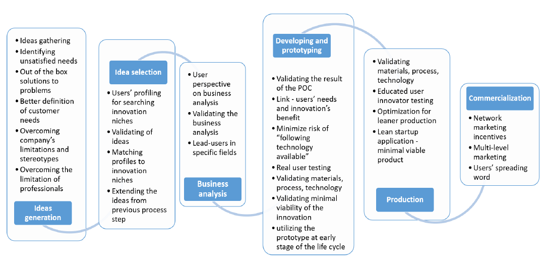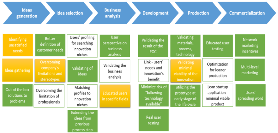 The paper also answers which of the proposed users’ activities can take place during the different phases of innovation development. The research propose a framework that may be tested repetitively in different industries and for different innovative purposes so to be properly and individually applied.