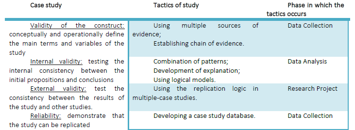 Figure 3 shows the evaluation methodology used to ensure the quality of the case study, based on Yin (2010, 64) and adapted to this study. All steps were applied to the study, following the proposed tactics.
