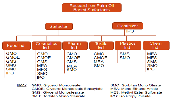 As Indonesian government has identified downstream industry of oil palm for national development priority, RCC LIPI followed up in 2001 by conducting research on oil palm product derivatives including GMO, GMS, SMO and SMS (Friani et al., 2013). These researches were started from laboratory and scaled up into bench and mini pilot plant.