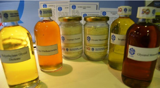 In food processing, GMS is known for its application in baking preparations to add "body" to the food. In 2002, researchers of RCC LIPI has obtained optimal process condition at laboratory for 10 liter production (Hilyati et al., 2000). In 2002-2003 researchers have developed GMS derivated from oil palm at production scale of 500 kg/ batch (Wuryaningsih et al., 2003). Some of results including identified storage time, instrument and facility design and installation, and feasibility study (Center for Innovation LIPI, 2002).