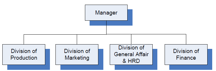 One example of organization design is illustrated in Fig. 5. This is a simple design accommodating four main functions of organization, i.e. production, marketing, human resources and finance (Setiawan & Haryono, 2013). This design serves basic form for other researches including surfactants.