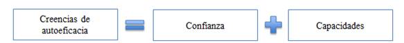 De acuerdo con las definiciones anteriores podemos distinguir dos componentes de las creencias de autoeficacia (del traductor): a) las capacidades para desempeñar una tarea concreta y b) la percepción de dichas capacidades (o la confianza en ellas) (Haro-Soler, 2018a), como se ilustra en la Figura 1.