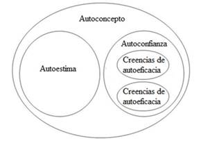 Llegados a este punto, resulta conveniente distinguir las creencias de autoeficacia de otras autopercepciones con las que suele confundirse (Prieto, 2007), como la autoconfianza, la autoestima y el autoconcepto. La Figura 2 representa las relaciones jerárquicas y los límites que permiten diferenciar dichas autopercepciones.