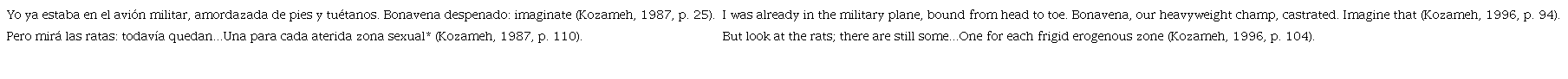 Keywords: metonymy, translation, transnational feminism, testimonio, Alicia Kozameh.