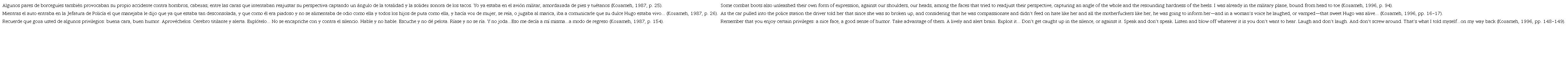 This article has drawn attention to the prominent role of metonymic language as a discursive mechanism for configuring female subjectivities in this feminist text as well as in its translation. It has been seen that the testimonial narrative studied challenges mainstream patriarchal assumptions in 1970s Argentina by portraying a female militant figure that conflicts with the prevailing woman-as-housewife stereotype prevailing in the patriarchal society of the time. Further, the narrative shows how the male-controlled system strives to punish and discipline these women -deemed as a subversive threat- and how women resist all attempts made at restoring them to the role they are expected to assume. In this context, figurative language contributes to inscribing new women-centered epistemologies in the source text. The analysis of the translated text has enabled us to arrive at three main conclusions. First, the recourse to literality as a translation strategy relies on less culturally entrenched figurative language. The more locally-anchored the meaning of the trope, the more difficult it is for translation to recreate nuanced meaning in its entirety on a one-on-one basis. Translation needs to compensate for the impossibility to recreate all the source layers of meaning by means of specific strategies, like glosses or notes in the paratext. In regard to the recreation of power relations, the source text seems to generally offer a more gender-aware reading, which, in turn, places greater interpretative demands on the Spanish-speaking audience. The translation, for its part, sometimes relocates metonymic language in more male-centered terms, apparently more adjusted to the receiving mainstream discourse. On occasions, this might curtail the potential of source metonyms to bring to the fore women’s gender issues and hinder the transit of resistant and defyingfemale epistemologies into a new (hegemonic) language and culture. However, the relocation of figurative meaning can also create new and enriching metonymic associations that further advance the feminist agenda and can, thus, become an intervention strategy in the translated text. Finally, in and through metonymic language it is possible to recognize heterogeneity among women and the new emerging roles in the Argentine culture.