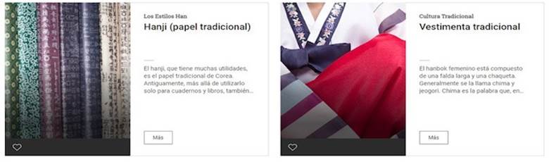 Nuestro corpus de culturemas relativos a la vestimenta tradicional coreana procede de la sección Cultura e idioma, y específicamente de la subsección Cultura tradicional y Vestimenta tradicional.9 En cuanto a la vestimenta, a través de textos escritos y fotografías, se presenta y describe el traje típico tradicional coreano, el hanbok, así como las formas de producción y su uso.