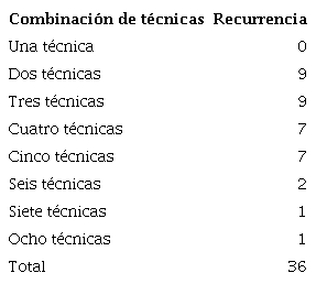 Por otra parte, hemos de comentar cuántas técnicas se han utilizado de manera combinada para traducir cada unidad de contexto donde aparecen los culturemas (Tabla 23).