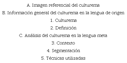 Para proceder con el análisis, en la Tabla 3 hemos elaborado la ficha que aplicaremos en el estudio de cada culturema.
