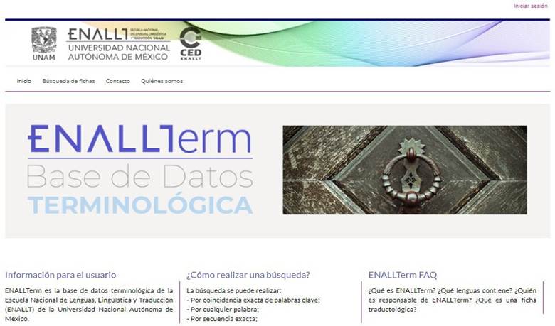 Como se puede ver, en este artículo nos proponemos describir el proceso de creación y diseño de la base de datos traductológica ENALLTerm, denominación que surge de la combinación de la sigla de la Escuela Nacional de Lenguas, Lingüística y Traducción, y la abreviatura “term”, de “terminología”.