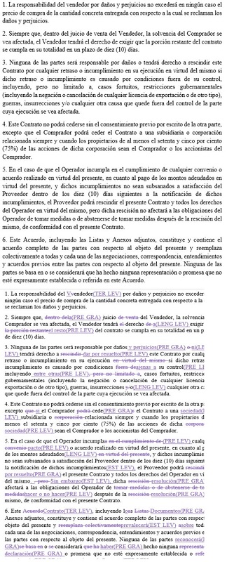 No obstante, la TA tiene una mejor comprensión de la estructura semántica profunda de las oraciones complejas y de la función sintáctica de los elementos oracionales. También presenta una mejor capacidad de comprensión y traducción de la correlación temporal o consecutio temporum, que plantea muchas dificultades a los aprendices de traducción jurídica, por la profundidad de la subordinación que se aprecia en el discurso jurídico (multiple embedded clauses). Como la TA utiliza un modelo de lengua que le permite saber cuál es el orden correcto de las oraciones y la formación de las frases en la LM, no hay tantos errores de este tipo en la TA como en la TH de aprendices de traducción jurídica. Esta afirmación se puede observar en el uso erróneo del subjuntivo que puede encontrarse en las TH: los impagos que no se subsanaran*, en lugar de los impagos que no se subsanen. Al igual que en: cualquier otra causa […] de la parte cuyo cumplimiento se ve afectado*, en lugar de cualquier otra causa […] de la parte cuyo cumplimiento se vea afectado.