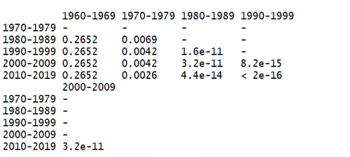 As can be seen in Table 2, the only test in which the alternative hypothesis was accepted for the demographic category was the one in which the different decades of certification among STI were explored. An interesting aspect of this finding is that this is not a very common topic of discussion in directionality research. Nevertheless, for the Colombian context, it could be said that there is a specific predestination to translate/interpret more into Spanish or into English for STI depending on their decade of certification (Figure 5). When applying the posterior test to determine or to observe the differences, we can observe (see Figure 4) that there are very prominent differences between almost all segments of STI. As will be clarified later, the focus of this research was not to determine why this happens. Instead it aimed to point out that, in fact, some peculiarities in the context of sworn translation and interpretation are taking place and should be described or tackled in the future.