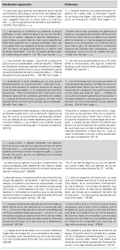 En contraste con la situación anterior, los participantes de la udea y la ula consideran que la formación lingüística en sus programas resulta insuficiente y que esas deficiencias deben ser subsanadas por los alumnos de manera independiente. Esta queja puede estar relacionada con el hecho de que el conocimiento del inglés por la población de Colombia y Venezuela esté catalogado como de los más bajos del continente, de acuerdo con el Índice de Nivel de Inglés (2018).10 Además de esto, los participantes de estos países manifiestan haber recibido una formación en lenguas (tanto extranjeras como materna) bastante deficiente durante el bachillerato, y a ello se agrega que ninguno de los programas de traducción ofrecidos en Colombia o Venezuela exige conocimientos lingüísticos mínimos para el ingreso de los estudiantes nuevos.