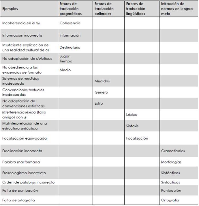 Objetivo de la tarea: evaluar, en la traducción de un par, los errores de traducción pragmáticos, culturales, lingüísticos y derivados de convenciones.