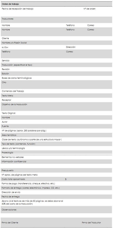 Objetivo de la tarea: elaborar y completar la orden de trabajo en función de los requerimientos del encargo de traducción.
