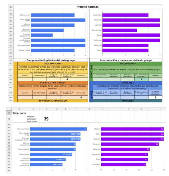 Dado que estas explicaciones son fundamentales, el profesor considera ahora indispensable hacer estos énfasis desde el primer nivel de lengua para que los estudiantes los tengan en cuenta y más que una transposición de palabras, construyan un texto comprensible que transmita las ideas del texto origen. Esta instrucción ya se está ofreciendo en todos los cursos, con excelentes resultados, de manera que se nota el cambio en la presentación de los textos meta. También se le ha hecho énfasis al alumnado en que los contenidos de traducción pueden aplicarse a otras lenguas y se han puesto ejemplos, especialmente del inglés, de manera que sean más conscientes a la hora de traducir, no solo griego, sino cualquier otra lengua, solucionando problemas de interpretación y siendo más conscientes de las diferencias entre las lenguas en todos los aspectos (gramatical, semántico, etc.). Asimismo, incluir y evaluar los aspectos de la traducción enriquece y hace más conscientes los procesos en el aula, gracias a los nuevos criterios.