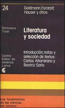 Goldmann, Escarpit et al. (1977). Contraportada. En Literatura y sociedad. Introducción, notas y selección de textos: C. Altamirano y B. Sarlo. Buenos Aires: CEAL .
