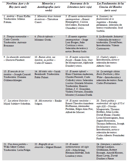 Si bien es preciso tener en cuenta que la publicación de obras decimonónicas también se debía al hecho de que estuvieran libres de derechos, lo cierto es que en última instancia los criterios de selección sin duda obedecían a perspectivas específicas sobre la función social de la literatura, no exentas de controversias, como puede apreciarse en Los diarios de Emilio Renzi de Ricardo Piglia, quien consignaba en las entradas del “Diario 1977”: “Viernes 16. Con excesiva dureza me enfrento a Beatriz S., que expone sus ideas sobre el realismo. La literatura le es ajena como a los realistas la realidad” y