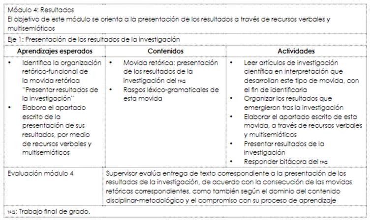Una segunda proyección relevante se asocia con una revisión actualizada y en profundidad de las asignaturas claves que tributan al desarrollo de habilidades de escritura. Esta tarea podría contribuir a verificar que el trabajo de los estudiantes esté orientado a una progresión sostenible en el alcance de competencias investigativas que se evidencian en su escritura académica en la instancia del TFG.